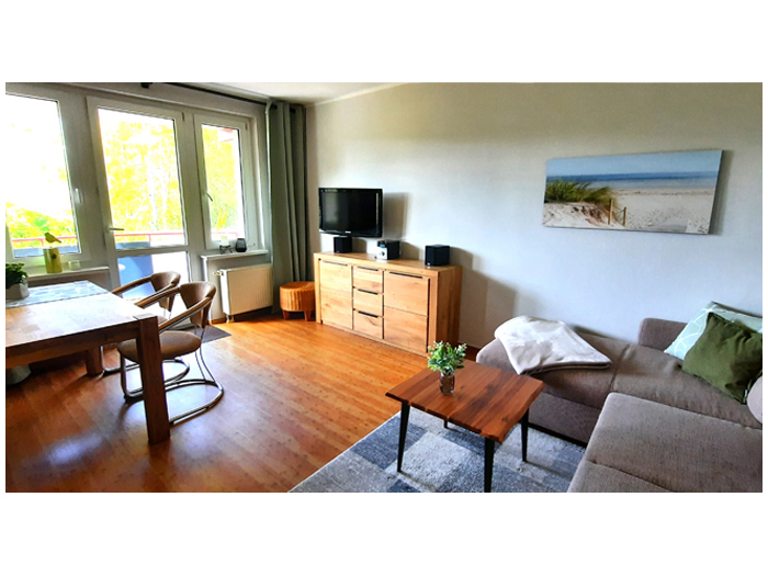 ... mit Fernseher, CD-Stereoanlage und Balkon, auf dem Sie Ihren Kaffee in der Nachmittagssonne genießen können.